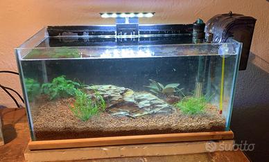- Acquario 15 litri in vetro con sfondo nero 40 x 20 x 20 + pompa filtro esterno a zainetto, riscaldatore, luce led - Buone condizioni
