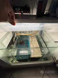 Vendo acquario artigianale da 125X60X60 costruito nel maggio del 2020, completo di sump, sistema di carico/scarico della ultrareef, pompa di risalita hydor da 3000 lt/h compresa di controller, riscaldatore JBL 100W, sistema di rabbocco automatico preso su Amazon, lampada per marino “datata” Zetlight 6500 con telecomando, pompa di movimento della TUNZE con controller. Tutto il materiale per la filtrazione sia meccanica (spugne) che biologico (cannolicchi e roccia lavica circa 10 lt). Le rocce sono artigianali fatte da me con sabbia e cemento poi resinate (sono vuote). La vasca ospita ciclidi africani dal 2020. Ritiro solo a mano