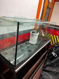Acquario 300lt con supporto a terra in ferro Misure Acquario: 150 cm lunghezza 40 cm larghezza 50 cm altezza Misure supporto 150 cm lunghezza 40 cm larghezza 93 cm altezza Completo di pompa, filtro, luce superiore