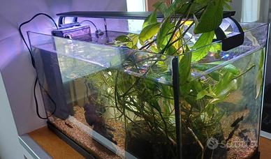 vendo per passaggio a modello più grande acquario con capacità di 60 litri, compreso di luce LED e riscaldatore.