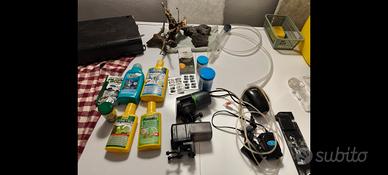 Acquario 80 litri con mobile, filtro esterno , termostato, termometro, sabbia , 2 legni per decorazione , un filtro interno , taniche per cambio acqua , e vari altri accessori .