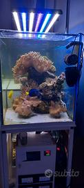 Vendo vasca 120x55x45x65 profondità, vetro exchiaro da 12 mm mobile in ferro zincato bianco, pannelli laccato bianco, completa di samp con diverse paratie 70x50, a dx scomparto per impianto elettrico e varie ,se interessati posso vendere a parte due plafoniere giessman verrve come nuove revisionate in azienda in Germania , CORALLI e PESCI esclusi , Ritiro a mano zona Musile di Piave