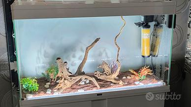Vendo acquario completo di mobile originale Ciano, ideale per acqua dolce. L’acquario è in buone condizioni, senza perdite e pronto all’uso. Misure: 60cm di altezza 100cm di Lunghezza 40cm di profondità Incluso nel prezzo: Mobile originale coordinato Filtro interno funzionante Riscaldatore Arredi interni (legni e decorazioni) Fondo già inserito.
