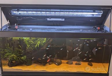 Vendo acquario dolce completo di luci led Sera, con 3 dimmer, per alba/tramonto ed allestimento per cambio progetto, preferisco ritiro a mano e possibilità di vendita dei componenti singoli ma ad alcune condizioni. preferibile ritiro a mano, a chi lo prende l'acquario completo lascio anche tutta la popolazione di pesci già inseriti.