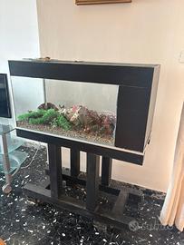 Vendo acquario in vetro con mobile in legno massiccio, ideale per acqua dolce o marina.