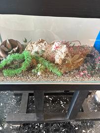 •Fondo già allestito con ghiaia, rocce decorative e piante finte