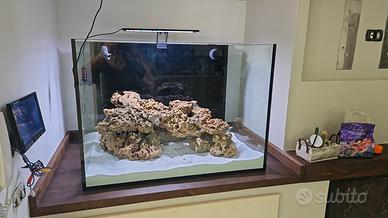 vendo acquario marino per cambio progetto vasca vetro 1cm sfondo nero carico 25 sx scarico 50 dx dimensioni 90x60x65h 2 mesi dall incollaggio