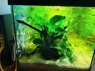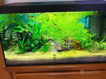 Vendesi per trasferimento ad altra abitazione, acquario di 60lt, l’acquario viene venduto così com’è . L’acquario attualmente è piantumato con piante vere all’interno vivono varie specie di pesci tra cui neon, guppy , black molly, lumache e dei caridina di vario colore. Inoltre l’acquario viene ceduto di ogni accessorio utile tra cui filtro angolare sera xdege 450, riscaldatore, aeratore, mangiatoia automatica e una serie di additivi per mantenere le condizioni dell’acqua ideale per piante e pesci. L’acquario non necessita di nulla basta soltanto attaccare le spine ed ammirare. Disponibile subito ed entro il 31/12/2025. Solo ritiro a mano dato che viene ceduto già avviato.