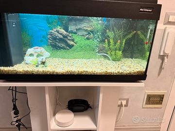 Vendo acquario di circa 90 litri gia avviato da qualche giorno, compreso di tutto ciò che si vede in foto. Filtro compreso