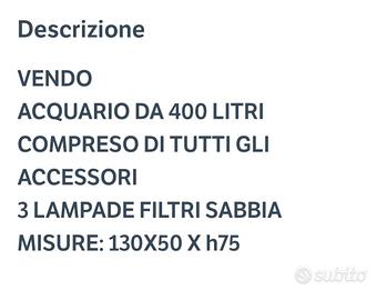 Vendo Acquario Misure vedere nelle foto consegna a domicilio dato che è imponente e fragile