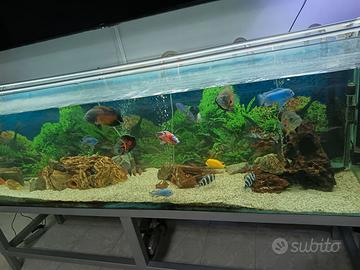 Acquario da 2 metri di lunghezza, altezza 75, larghezza 45,tutto completo, di filtro esterno, più 2 termostati, più una valvola movimento d'acqua,