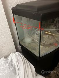 Vendo acquario completo con mobile e accessori. Dimensioni acquario: - Lunghezza: 110 cm - Altezza vasca: 60 cm - Altezza mobile: 72 cm - Vasca frontale curva, molto scenografica. Incluso nella vendita: - Mobile originale abbinato - Filtro e accessori per pulizia (sifone e raschietto) - Pompa Askoll - Bombola CO₂ con riduttore - Retini e utensili vari - Mangimi e prodotti per trattamento acqua - Termometro digitale - Vari accessori e ricambi L’acquario è stato utilizzato e presenta normali segni d’uso, ma è strutturalmente in buone condizioni.