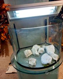 È un acquario com mobile annesso in cristallo e lampada