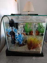 Vendo acquario comprato a febbraio 2025 . Ho 3 pesci tropicali ( 2 maschi e una femmina ) e 1 pesce pulitore . Completo anche di filtro , riscaldatore dell acqua e luce .
