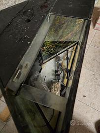 vendesi acquario causa inutilizzo, segni di usura estetici ma condizioni generali buone, assieme presenti luce led con temporizzatore, pompa d'acqua e termometro. no spedizione, ritiro a casa e possibilità di vederlo.