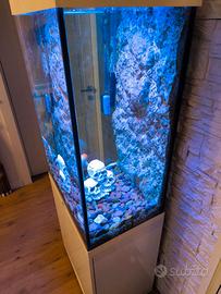 Bellissimo acquario da 216 Litri comprensivo di filtro, distributore automatico di cibo e accessorio per pulizia del vetro; Dimensioni: 60 larghezza X 40 spessore X 90 altezza. Prezzo un po' trattabile. Non spedisco.