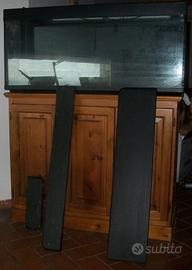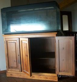 Acquario in vetro temperato da 270 lt + mobile artigianale in legno su misura + accessori in omaggio.
