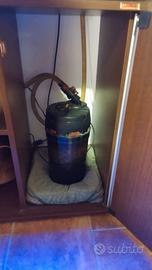 Vendo acquario Wave 150 litri, Accessoriato, termostato 300 watt, sensore di temperatura, completo di arredamento come in foto, impianto aerazione, pompa esterna da 900 lt/min. Filtro esterno lampada Uvc 11 watt. Completo di mobile come in foto. Condizione visto e piaciuto. No affaristi e perditempo