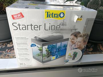 Vendo acquario in vetro Tetra Starter Line 30 litri 41x30x25, illuminazione a LED integrato 6 watt con modalita' luce diurna (notturna) e sportello x alimentazione integrato, usato un mese, come nuovo, per passaggio a modello superiore.
