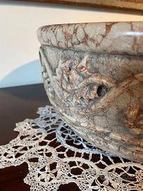 Acquasantiera lavamano in marmo di carrara del XIX secolo. Lavamano in marmo rosa di Carrara decorato con foglie e grappoli d'uva. DIAMETRO 37 cm, ALTEZZA VASO 18 cm OTTIME condizioni.