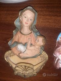 3 acquasantiere cm 16x10 un crocifisso un quadro Padre Pio di diametro 27