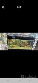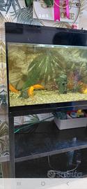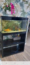 Vendo acquario con mobile nero, con 2 comodini ripiani multiuso. Vendo con arredamento interno modello "Spongebob" e pompa per l'acqua. Insieme anche alla canna per la pulizia e al suo retino.