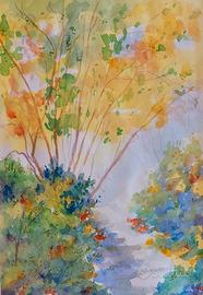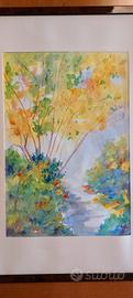 Un dipinto che ha luce e da luce, colori bellissimi fusi tra loro che solo un acquerellista di grande pregio come Guido Marena può fare. Le misure sono 34x50 il solo dipinto con la cornice in radica 52,5×73.