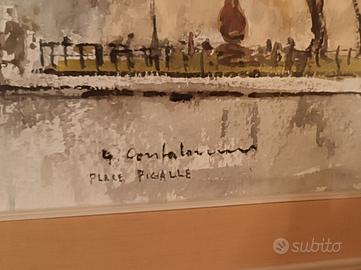 Vendo acquerello originale di Giulio Confalonieri, titolo Place Pigalle.
