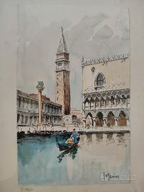 Acquerello raffigurante Venezia, titolo "Il molo".