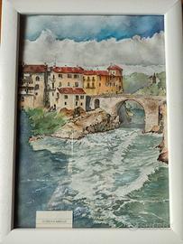 acquerello. La Dora Baltea in piena. Ponte vecchio