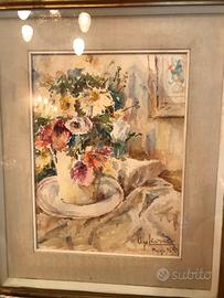 Bellissimo acquerello, con colori delicati, tema floreale, eseguito negli anni '70 dall'artista campano Ugo Leone.