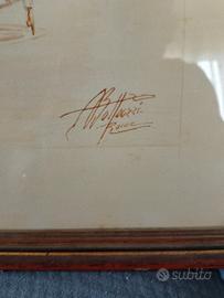 Gradevole Acquerello su cartoncino di Alfredo Bottazzi attivo tra il XIX secolo e inizi del XX secolo. Rappresenta l'Isola Tiberina . È molto ricco di particolari, gabbiani , il ragazzo che gioca con l'acqua Sdraiato sul barchino , numero due personaggi che guardano giù dal ponte ecc....Le misure losono con cornice Altezza 74 cm e Larghezza cm. 37 . " Bella mano " del pittore.