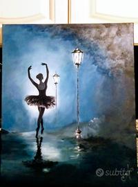 splendido dipinto a mano acrilico su tela ballerina al chiaro di luna misura 50x60