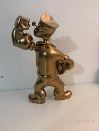 Statuetta di braccio di ferro alta 32 cm realizzate in resina e sopra verniciata color oro lucido.