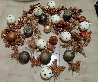 Set composto da 28 pezzi (2 striscioni, punta albero e sfere tonde e frutta). Colori panna, rame e marrone scuro.