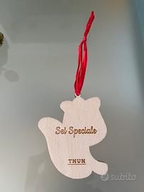 5 Decorazioni natalizie fiore thun in legno, albero di Natale in stoffa e perline, pacchetto regalo etc..set 6 euro X info a disposizione grz