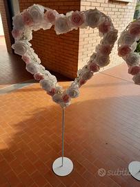 Vendo cuori fatti con rose di tessuto bianchi e rosa ..usati per un matrimonio come addobbo chiesa. vendo in coppia a 20 euro. Altezza 120 cm. Perfette condizioni ritiro a mano