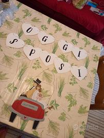 Scritta "oggi sposi" da appendere all'auto (3€) Sticher in cartoncino x fare foto (5€) Macchinetta con scritto "just married" da appendere all'auto (5€) Posso venderli sia insieme che separatamente. Ritiro in casa o pagando spedizione