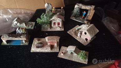 varie casette per il presepe con statuine di re magi, pastori e altri vari personaggi di varie dimensioni.