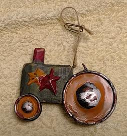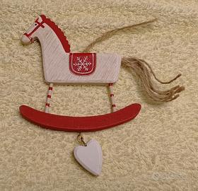 Serie 5 Addobbi Natalizi da appendere all'albero oppure altrove. Per dare l'idea della dimensione, li ho fotografati assieme a una tazzina da caffè da bar. I tre cavallini sono di legno