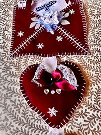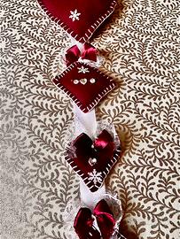 Addobbo natalizio da appendere in feltro bordeax finemente decorato con pizzo e brillantini Altezza cm 85 Pezzo unico Lavorazione artigianale