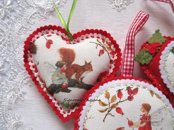 Gli addobbi natalizi sono cuciti in feltro pannolenci e tessuto,