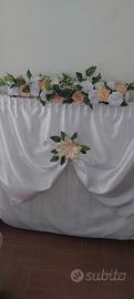 Bellissimi addobbi per matrimoni con rose di raso creato per decorare la porta d'ingresso oppure i tuoi spazi all'aperto.