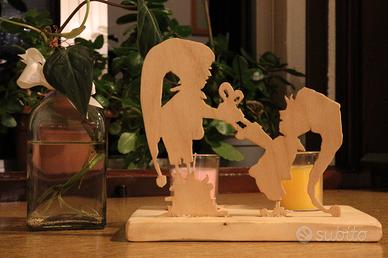 Vendo piccoli elfi in legno. Addobbo natalizio, decoro casa, idea regalo. Due candele comprese nel prezzo. Dimensioni: 20cm x 13cm x 15cm