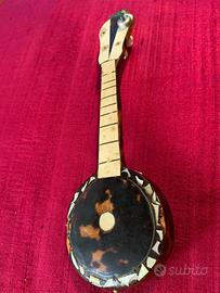 Miniatura liuto in legno con piccoli particolari in madreperla da appendere all’albero lunghezza cm 14,5