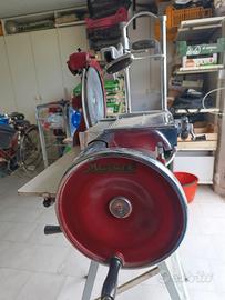 Affettatrice a volano MARVEL usata, dimensioni, lunghezza 640 mm larghezza 650 mm altezza 590 mm lama diametro 300 mm perfettamente funzionante le condizioni sono buone, con normali segni del tempo tipici di oggetti vintage