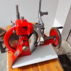 AFFETTATRICE a volano rossa anni 50 antica perfettamente funzionante e restaurata. riverniciata e lucidata. posso spedire. per altre foto scrivete. Dimensioni 80x60 Alta 57 simile a Berkel Omega San Marco Berkel NON TRATTABILE