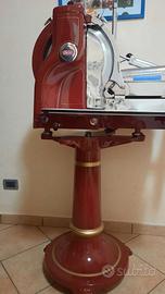 Una delle caratteristiche distintive di questa affettatrice è la lama con un diametro di 320 mm, progettata per offrire tagli impeccabili, rendendola una delle migliori realizzazioni di Berkel. Le decorazioni, curate nei minimi dettagli, sono impreziosite da filigrana in oro vero, sia sull'affettatrice stessa che sul suo piedistallo, conferendole un’eleganza senza tempo.