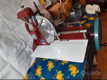 Per appassionati di antiquariato e amanti della cucina tradizionale, vendo magnifica affettatrice a volano. Si tratta di un pezzo storico, caratterizzato dall'iconico design rosso e dal funzionamento manuale tramite volano, che garantisce un taglio perfetto senza surriscaldare il prodotto.