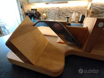 Affettatrice per piccoli salumi. Marca BRONCOUCKE -modello GOLIATH XXL SO APERO. A ghigliottina inossidabile, legno di faggio, lama dentellata, made in France, qualità artigiananle. Ottime condizioni. dimesioni 38x22x14,5 cm. No imballo originale